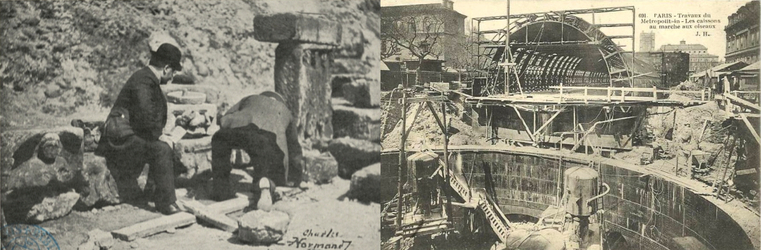 Les travaux du métro étaient impressionnants. D’énormes caissons étaient montés sur place puis enfoncés dans la terre afin de créer un tunnel devant passer sous la Seine. Une prouesse technique, puisqu’il s’agit du premier tronçon du métro parisien immergé. Hélas, le chantier connut un épouvantable drame, qu’aucune plaque ne rappelle. Une avant-veille de Noël, le 23 décembre 1907, cinq ouvriers périrent dans un caisson, suite à un accident de pressurisation, comme le relate Le Petit Parisien. Et, quelques semaines plus tard, un terrassier perdit la vie, après une blessure à la tête [9]. Par ailleurs, la station du métro nécessita la construction d’une usine électrique sur l’île même. Le bâtiment, propriété de la RATP, existe toujours à deux pas de Notre-Dame.