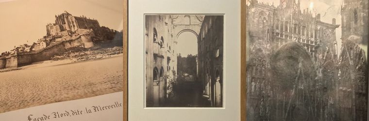 Quarante ans avant que Monet prit pour modèle la cathédrale de Rouen, celle-ci avait été immortalisée grâce au procédé photographique, avec d’autant plus de valeur quand il s’agit de daguerréotypes signés de l’amateur d’art John Ruskin en 1854. Les monuments étaient très prisés des photographes, la Normandie ayant évidemment été explorée par la fameuse Mission héliographique de 1851, commande publique de la jeune Commission des monuments historiques. La première photo de l’abbaye de Jumièges date de 1852, prise par le fils de son nouveau propriétaire qui la sauvera.